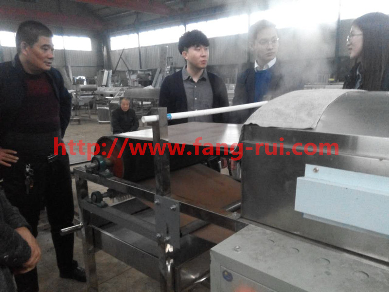 韓國客戶不遠千里來我廠考察蒸汽涼皮機設備,韓國的金先生是做連鎖面館生意,由于近年來人工成本增加,而且自己的連鎖店也越開越多,做面師傅的成本與日劇增。金先生一直在尋找可以代替手工做面的設備,在網上了解到方銳蒸汽涼皮機后,和外貿經理經過幾天的溝通,直接坐飛機不遠千里來我廠考察涼皮機讓廠家調試時間后直接發貨。在此感謝金先生的信任,希望方銳蒸汽涼皮機設備助您在生意發展道路上越來越順利!